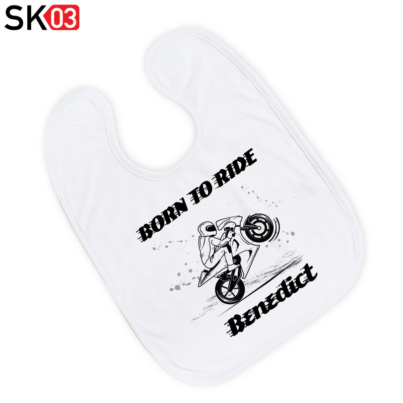 Das individuell mit Wunschnamen bedruckte Babyätzchen mit einem Superbike Motorrad und originellen Spruch „Born to ride“ ist ein liebevolles Mitbringsel für neugeborene kleine Jungen und Mädchen. Das Lätzchen wird mit einem Babynamen versehen. Rennstreckenfahrer werden dieses Unikat lieben. Es drückt aus, für welches Hobby Ihr Herz schlägt. Als persönliches Geschenk zur Geburt, Taufe und dem ersten Babygeburtstag für den Nachwuchs eignet es sich ideal für Eltern, die Motorradfahrer, genauer gesagt Motoracer sind. Die zauberhafte, personalisierte Geschenkidee mit Motorrad-Mottomotiv für den täglichen Gebrauch kommt auch bei den Großeltern, Uroma und Uropa gut an.