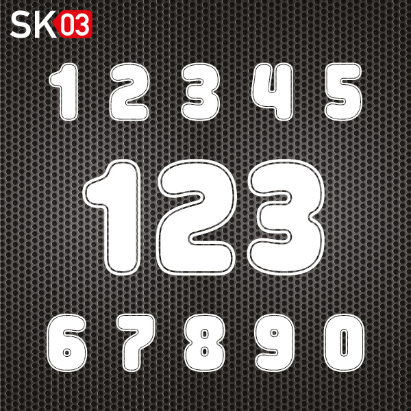Einfarbige Startnummern Zahlen Sticker komplett Set. Motorrad Startnummern in Wunschfarbe und Wunschhöhe. Aufkleber im einfarbigen Folienschnitt für Motocross Rennstrecke, Enduro Bike, Pitbike, MTB, Motorrad Rennen, MX Racing, Auto, Roller, BMX, Superbike Track, Supermoto Race, Quad, Scooter.