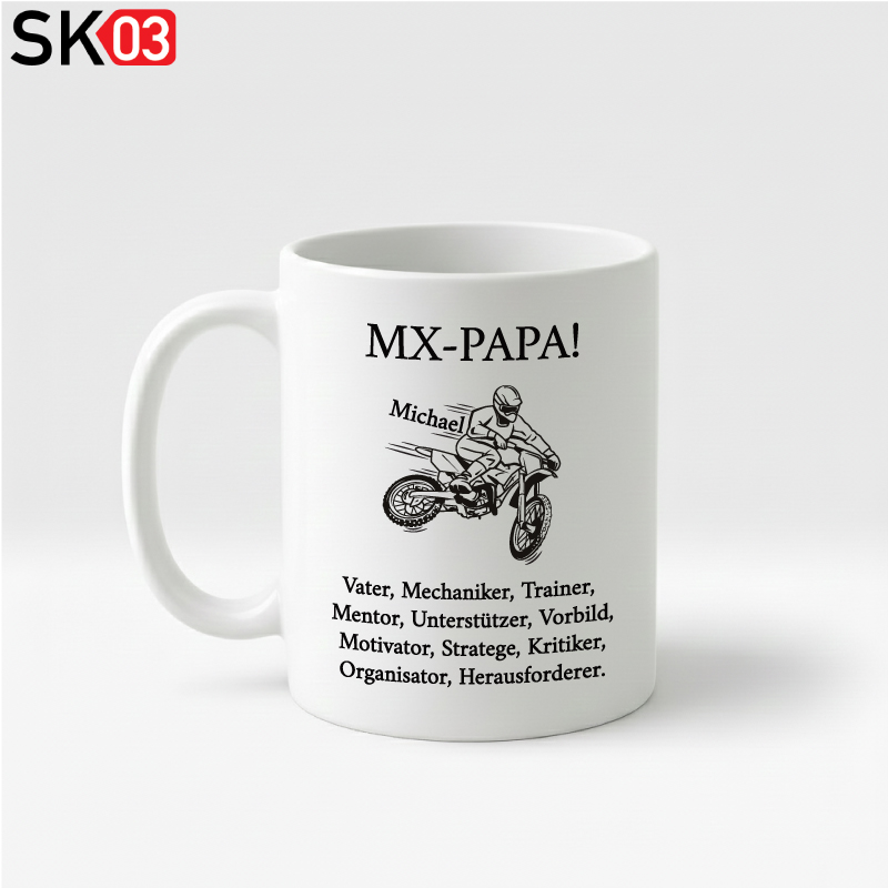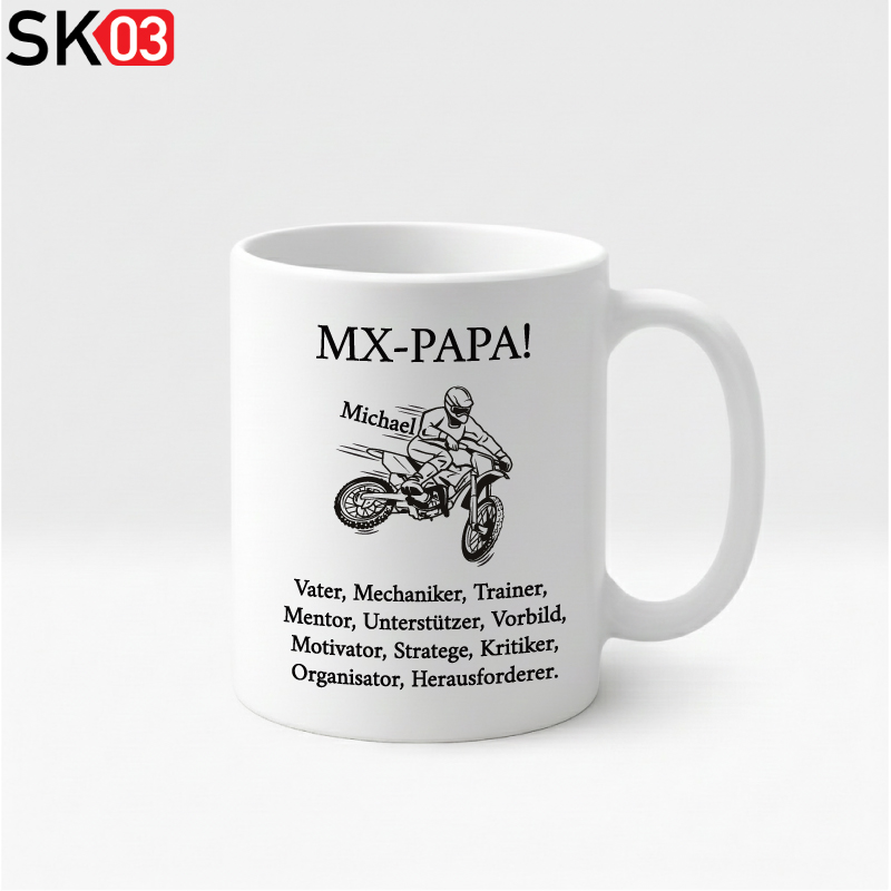Geschenk Motocross Fahrer Enduro Tasse mit Papa Namen personalisierte Geschenkidee Danke sagen Vater