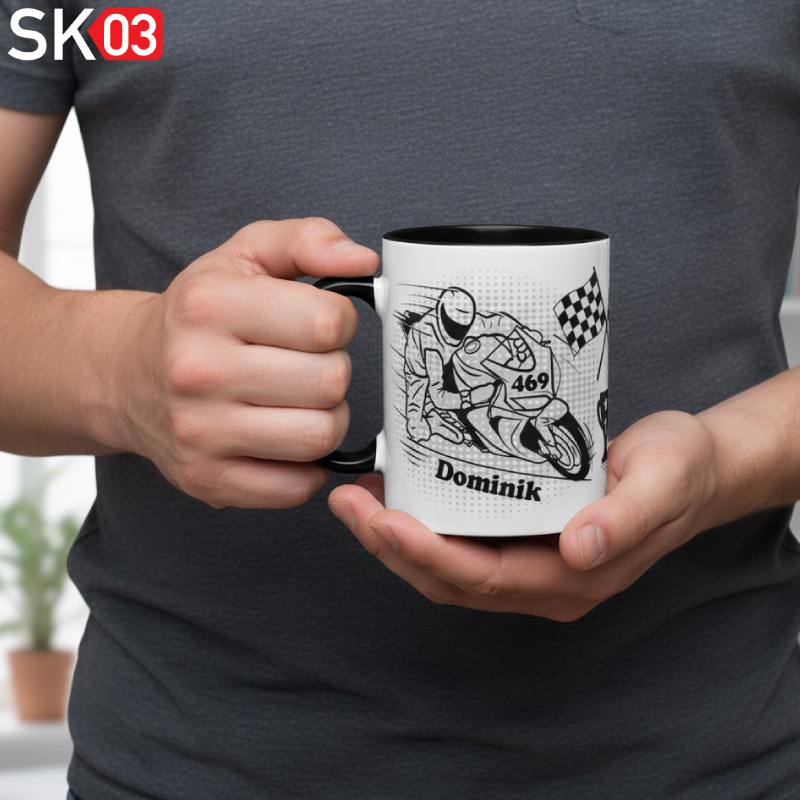 Motorrad Geschenkartikel Motorrad Tasse mit Namen und Startnummer für Motorradfahrer personalisierte Geschenke