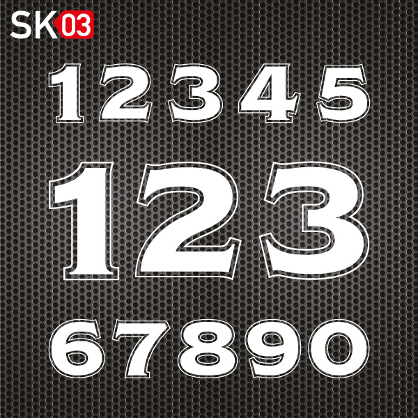 Motorrad Startnummern Zahlen Sticker komplett Set. Motorrad Startnummern in Wunschfarbe und Wunschhöhe. Aufkleber im einfarbigen Folienschnitt für Motocross Rennstrecke, Enduro Bike, Pitbike, MTB, Klassik Rennen, MX Racing, Auto, Roller, BMX, Superbike Track, Supermoto Race, Quad, Scooter.