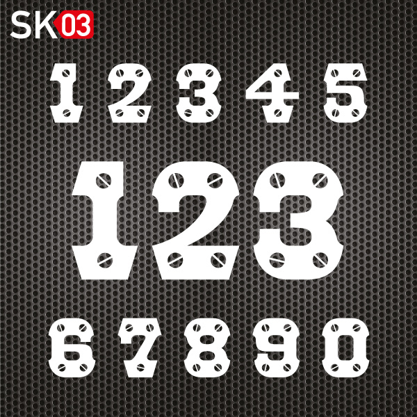 Startnummer Motorrad Screw Aufkleber mit Schraubenoptik Western einfarbiges Zahlen Set Motocross